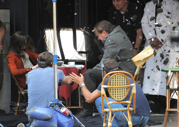 Well, OK, the following on-the-set shots were taken a few days back. Leo is probably as hung-over as you guys are, except he probably woke up next to model Bar Refaeli and not his own cousin.