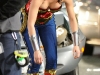 Adrianne Palicki was seen running around Hollywood last night shooting a chase scene for writer/producer David E. Kelly’s new “Wonder Woman” reboot. Photos from the set reveal that Palicki’s much maligned costume (“leaked” a couple weeks ago) has gone from shiny blue pants and boots to less shiny blue pants and red boots.